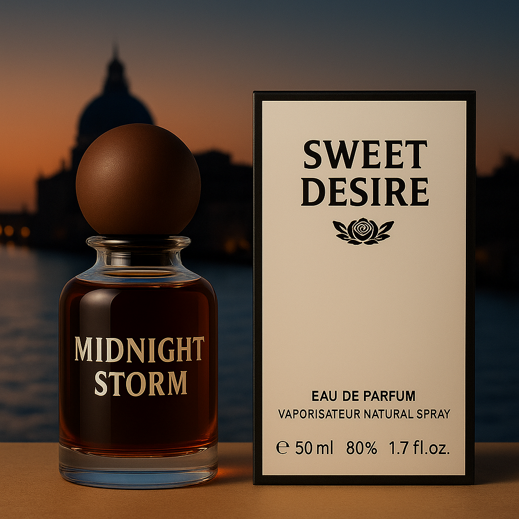 Midnight Storm bursts open with juicy pear and spicy cinnamon, flows into a smooth lavender heart, and settles into a seductive base of dark vanilla and amber.